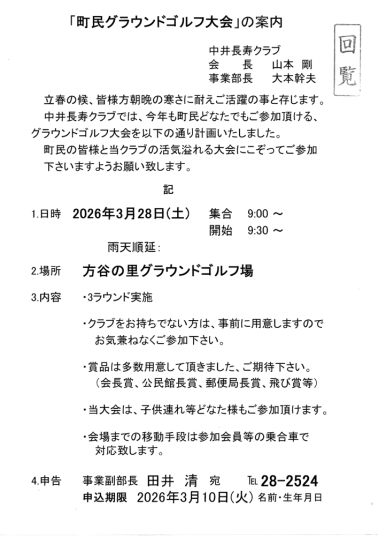 ・町民グランドゴルフ大会参加者募集のチラシ