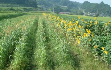 | 大きな田、小さな田のヒマワリが見ごろです。ロシアと太陽の2品種を播いています。 タカキビ、アワ、ヒエも穂が出ました。 26日の夕方は大豆にトレボン粉剤を散布しました。 モモの収穫が終わり、ブドウを今年初収穫しました。 27日は消防の地震火災訓練がありました。 |