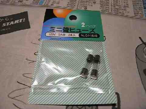 買ってきたやつはどこでも売ってそうなヒューズで2.5Aがなかったので2Aにしました。