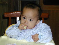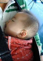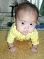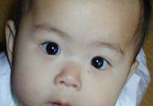 ![]() 普段は一重瞼なのですが、昼寝の 後にたまに二重になります。我が家 では「アイ・プチ」と呼んでいます。 |