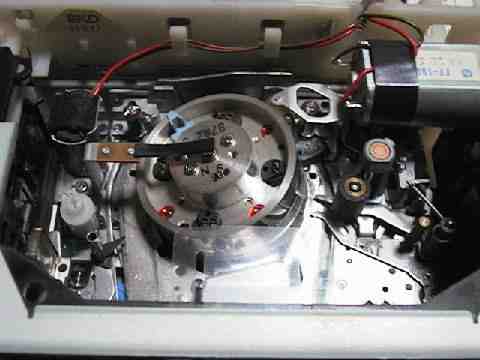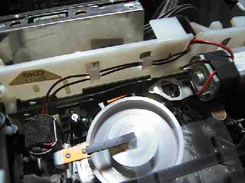 とりあえず分解してみるとテープがないのにポストはローディング状態になっていてこのまま電源を入れてもモータが唸って動きません。