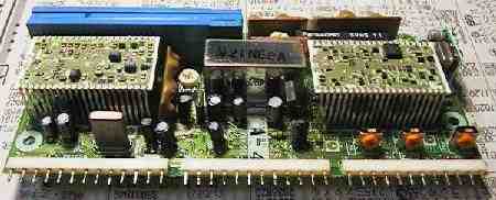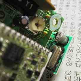次にHICを修理してみます。シールドケースに入った奴と右端の小さな奴にコンデンサが載っています。