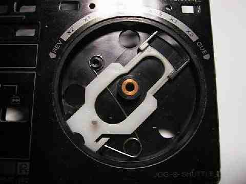 ジョグシャトル部分はこの銀色と黒で回転を検出しています。消耗するところがなさそうでいいですが操作性はいまいちでした。