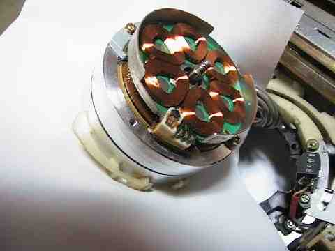 ドラムモータのねじをレンチで外します。それからドラムを固定してるバネ付きのねじを3本外すとごそっとドラムごと外れます。