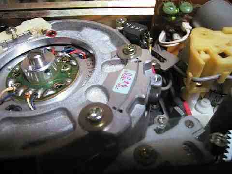 ドラム内部のコンデンサが劣化するとこういう症状になるということを高速化事業部のりょうさんに教えてもらいましたので交換してみます。左側のモータはキャプスタンモータで右側がドラムモータです。
