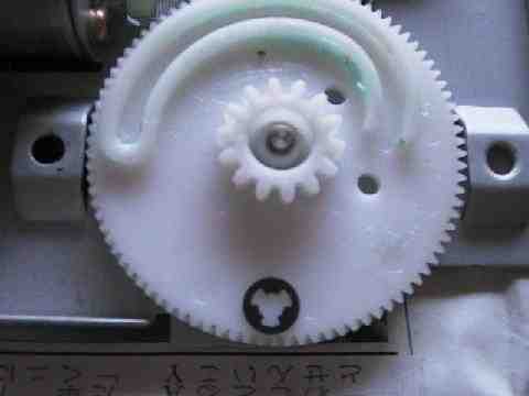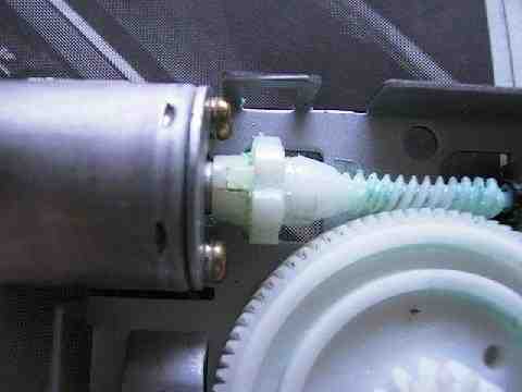 大きなギアの中心のポリワッシャを上手く取り外してギアを外してモータを取り外します。
